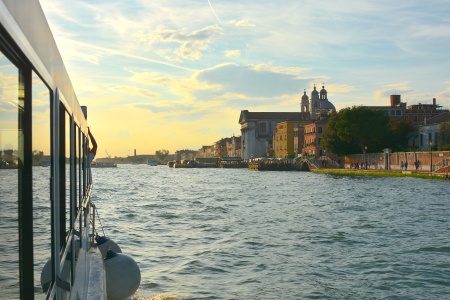 Pendant ce temps, le bateau navigue vers Chioggia(2). Pour les personnes n'ayant pas opté pour les excursions, un transfert est mis en place depuis Porto Viro vers Chioggia. Un temps libre à Chioggia est organisé. Retour à bord à Chioggia et navigation vers Venise. Soirée libre à Venise.